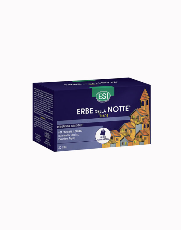 Erbe della Notte Tisana è l’integratore alimentare 100% naturale, costituito da una miscela di piante officinali selezionate con l’aggiunta di estratti di Passiflora e Tiglio.